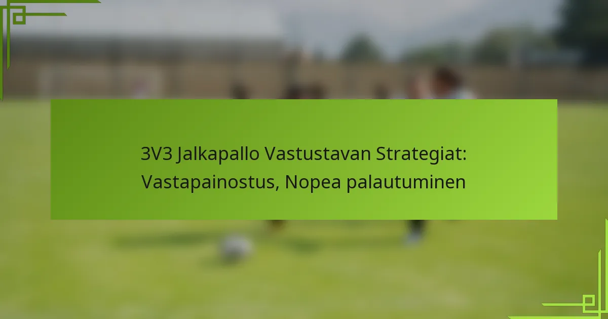 3v3-jalkapallossa tehokkaat vastahyökkäysstrategiat, kuten vastapainostus ja nopea palautuminen, ovat välttämättömiä pelin hallinnan ylläpitämiseksi. Vastapainostus tarkoittaa välitöntä yritystä palauttaa pallonhallinta sen jälkeen, kun pallo on menetetty, kun taas nopea palautuminen keskittyy puolustuksen muodon nopeaan palauttamiseen, jotta vastustajille ei syntyisi maalintekopaikkoja. Yhdessä nämä taktiikat eivät ainoastaan häiritse vastustajajoukkueen strategioita, vaan myös parantavat joukkueen kokonaissuoritusta ja moraalia.
