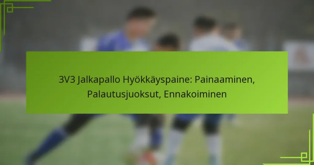 Keskeiset hyökkäysstrategiat 3v3-jalkapallossa sisältävät korkean painepelitavan, leveyden hyödyntämisen, tehokkaan liikkumisen ilman palloa, yhdistelmäpelit ja yksilötaitojen hyödyntämisen maalintekopaikkojen luomiseksi. Jokainen näistä strategioista auttaa joukkueita maksimoimaan hyökkäyspotentiaalinsa tiiviissä peliympäristössä.